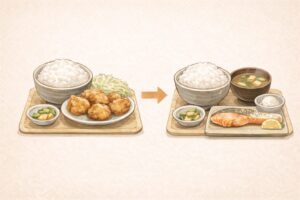 「揚げ物を食べるなら、ご飯は少なめにする」