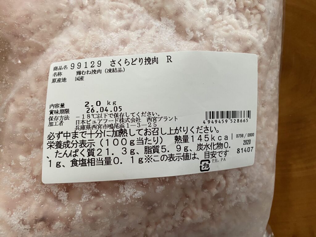 ①鶏ひき肉(鶏むねミンチ)